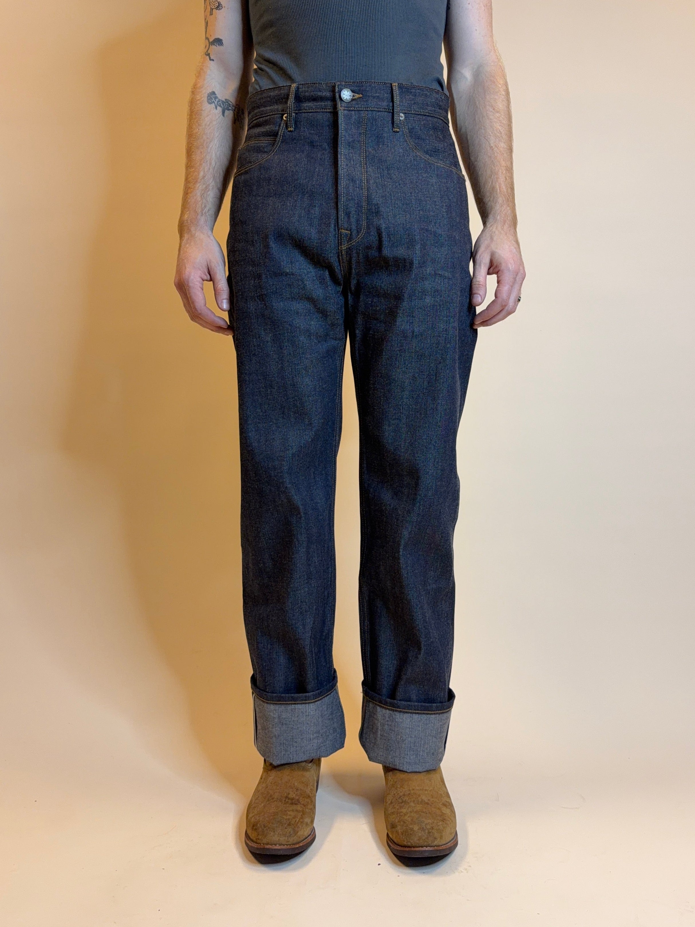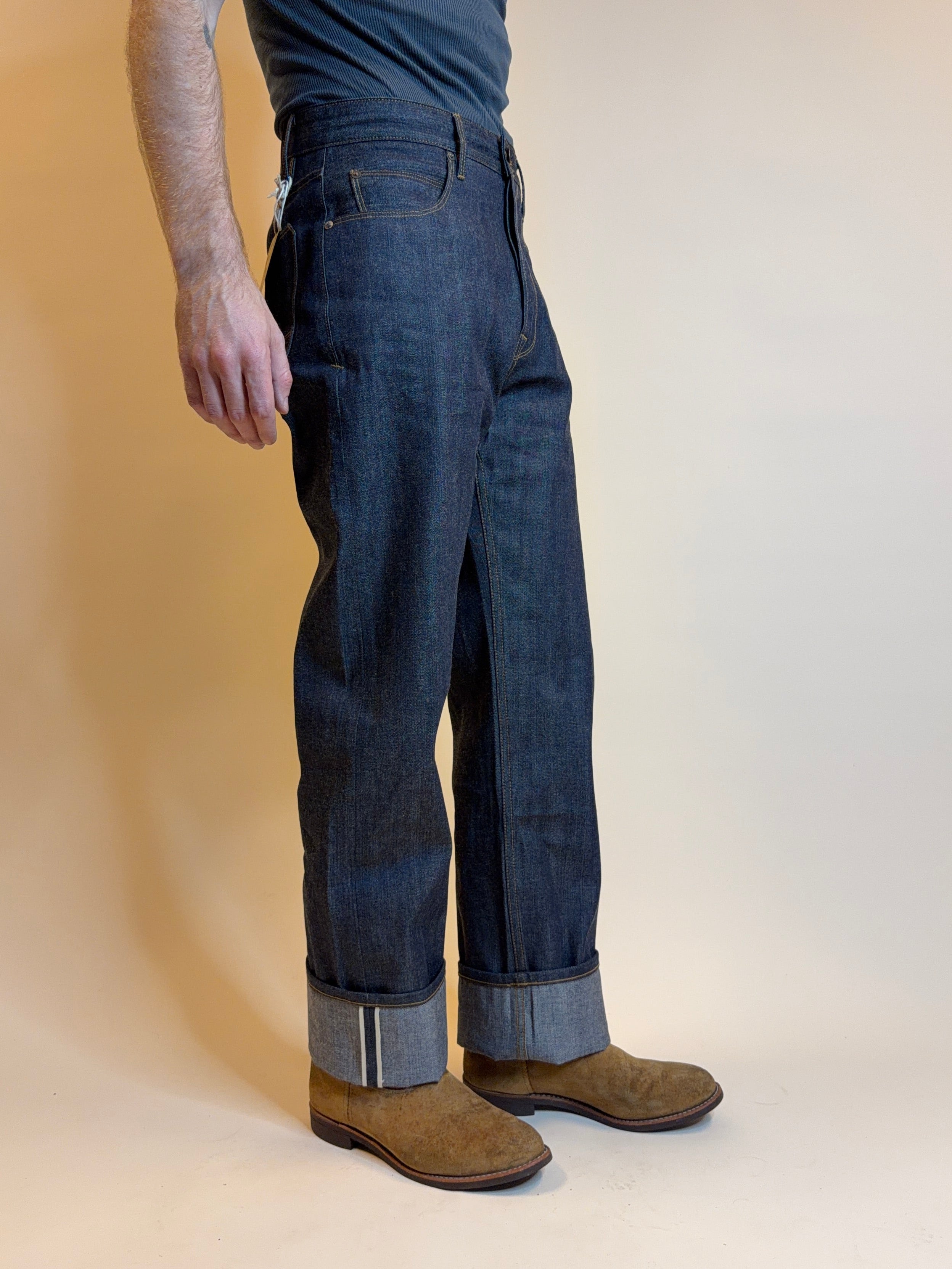 - Custom 11 ounce reproduction selvedge denim from Japan