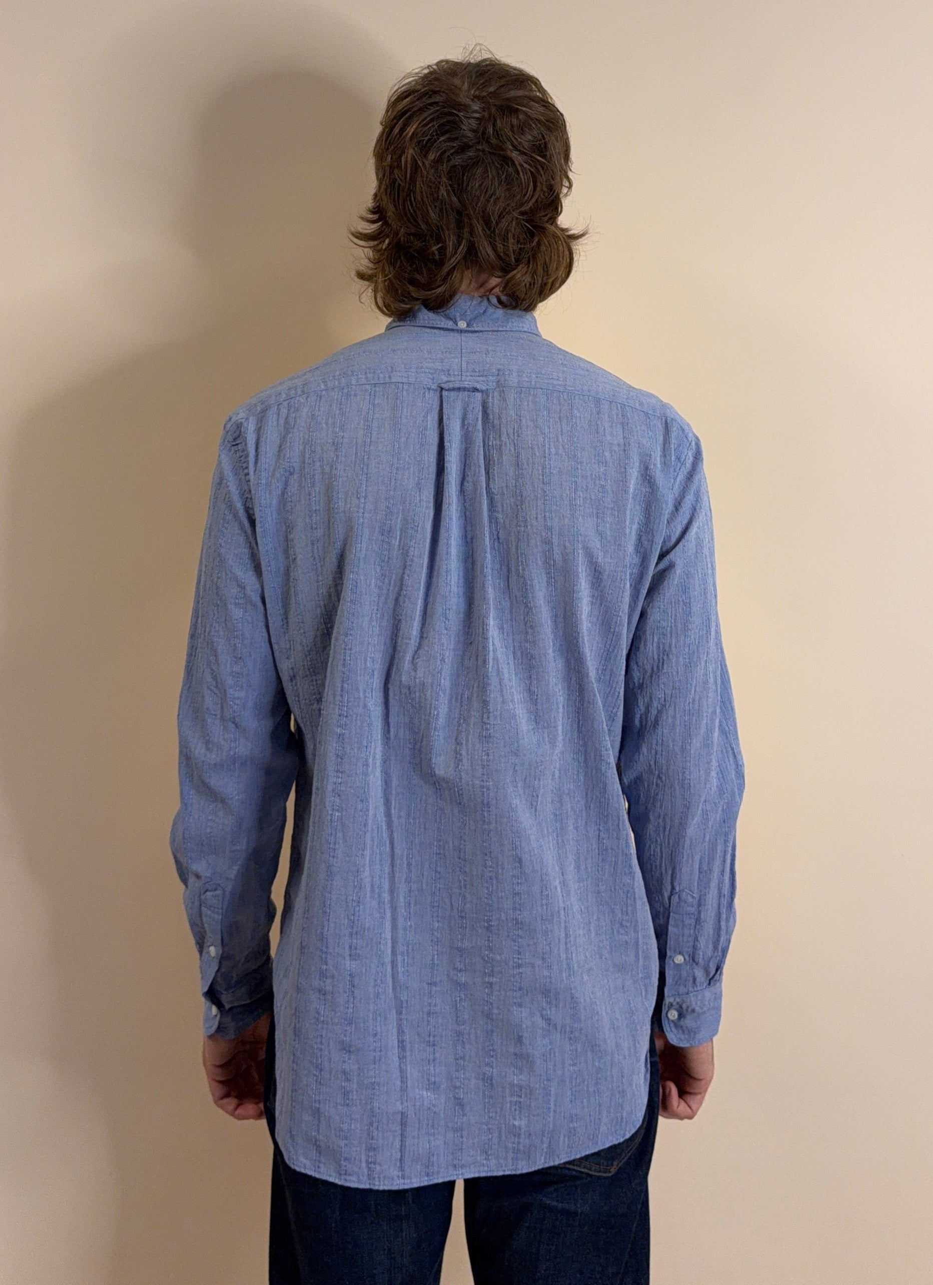 Lightweight and full of texture, this Chambray Dobby Stripe is a relaxed take on a classic ticking stripe. Woven in Japan on a complex dobby loom, the fabric starts with a chambray base and introduces subtle woven striping throughout. Contrast warp and weft yarns give the stripes just enough definition, revealing a soft ladder-like structure when you look a little closer.