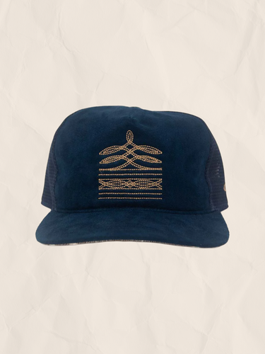 I've always admired the often subtle ornate stitching on cowboy boots but the pointy toe and heel just don't work for me. Like the stitched arcuate on the back pocket of a pair Levi's, its just a classic detail engrained in our consciousness but not immediately recognizable out of context. The Western striped underbrim and front panel lining were the perfect compliment.