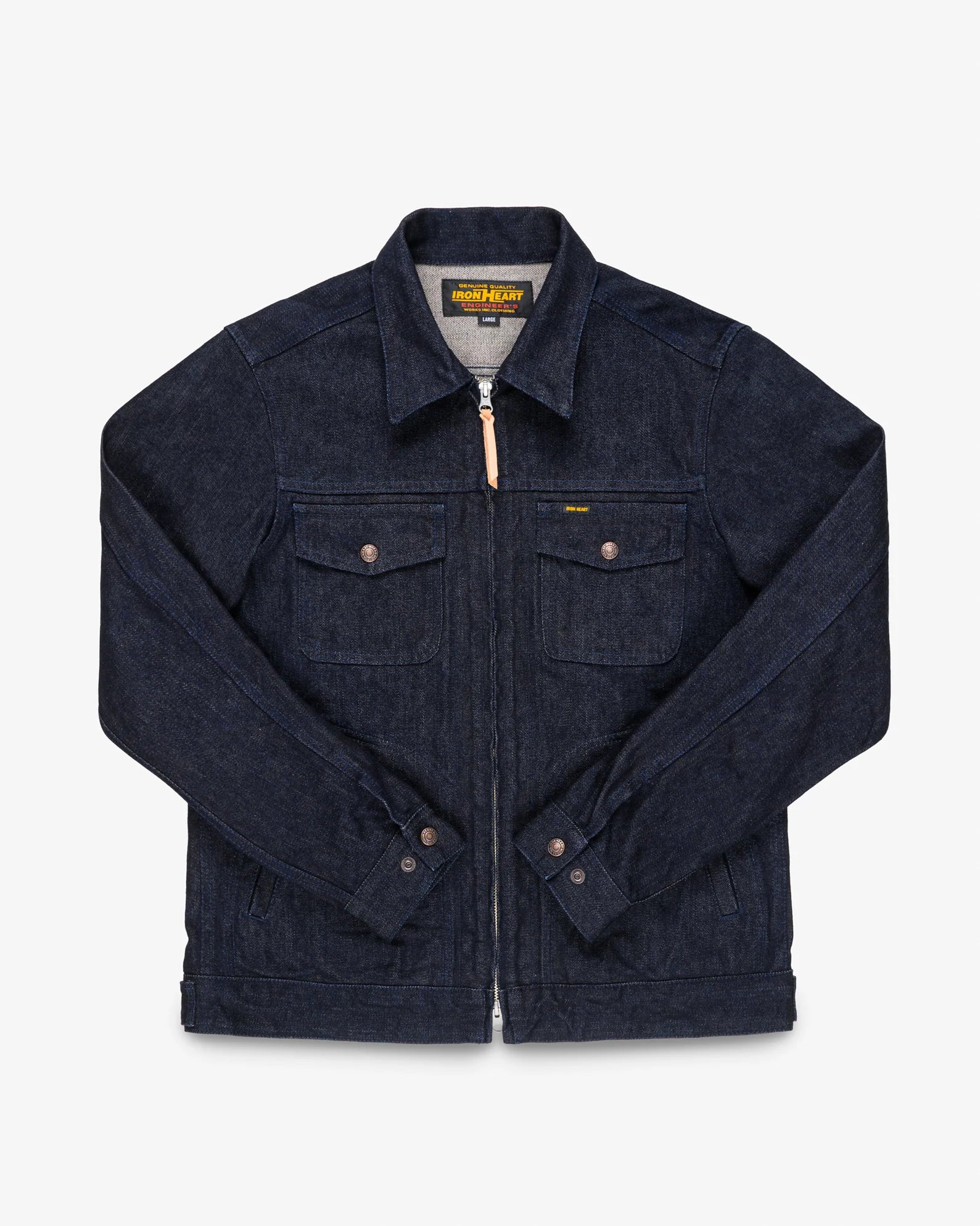 An Iron Heart zip work jacket, built from 14oz broken twill selvedge denim.