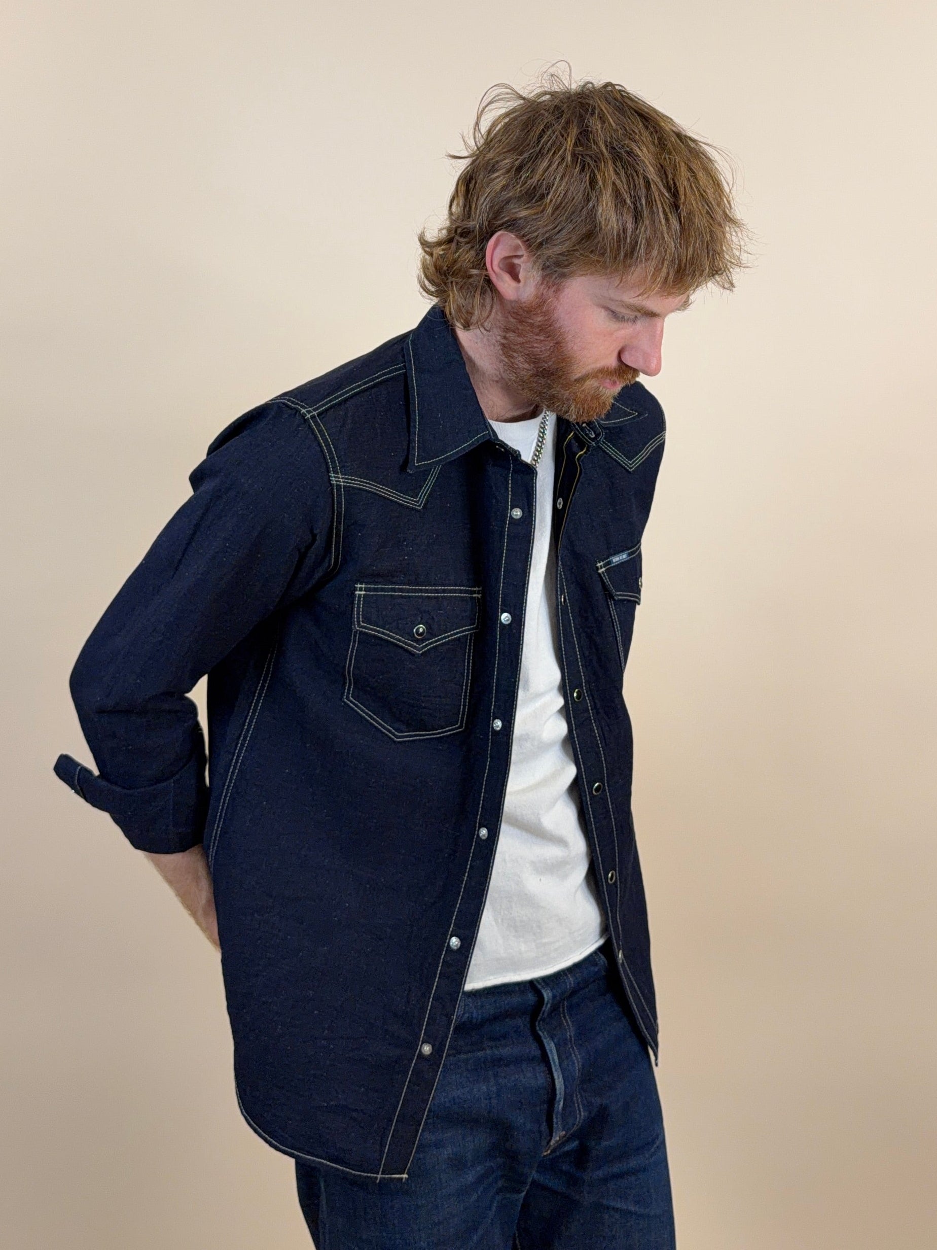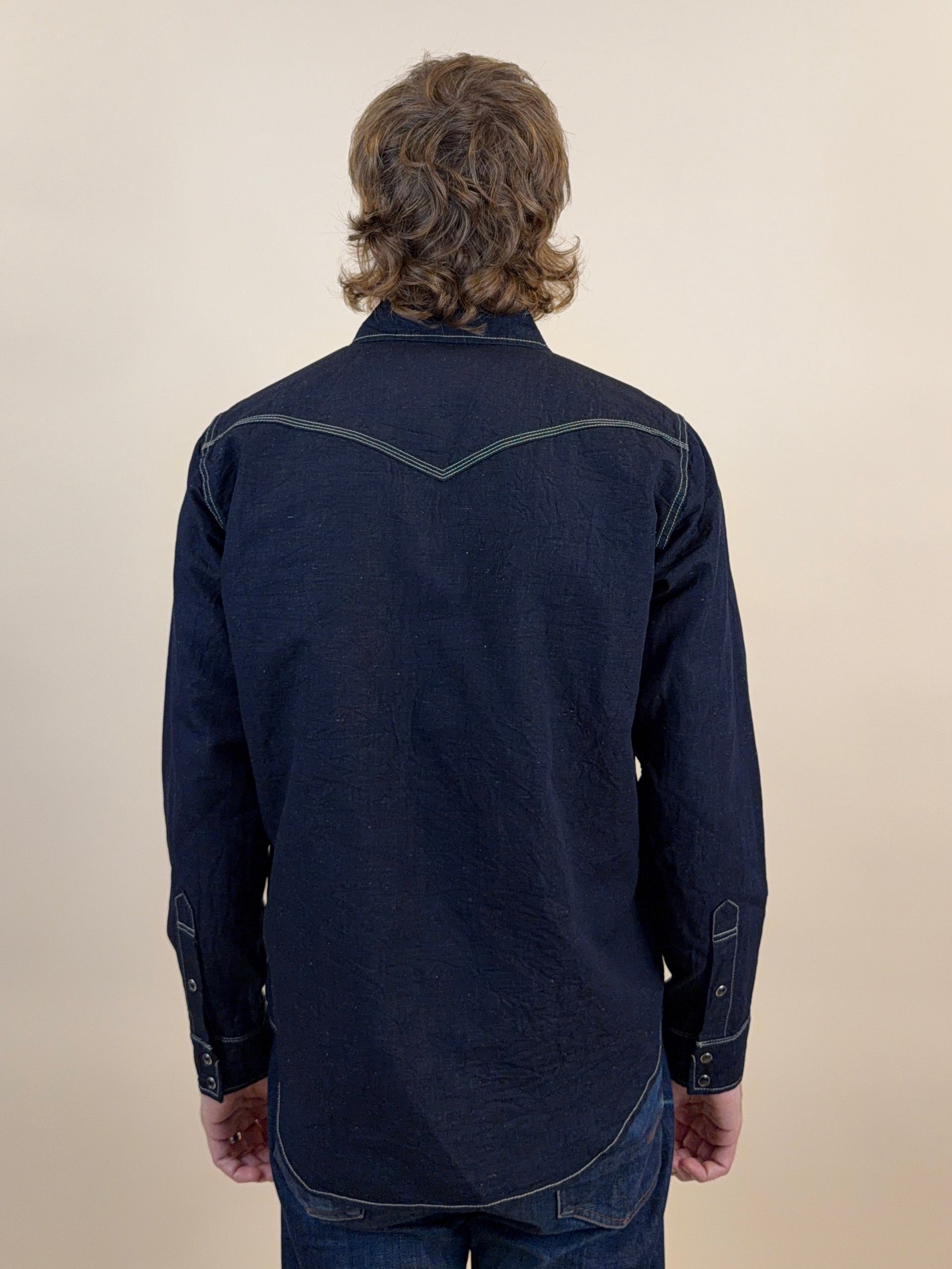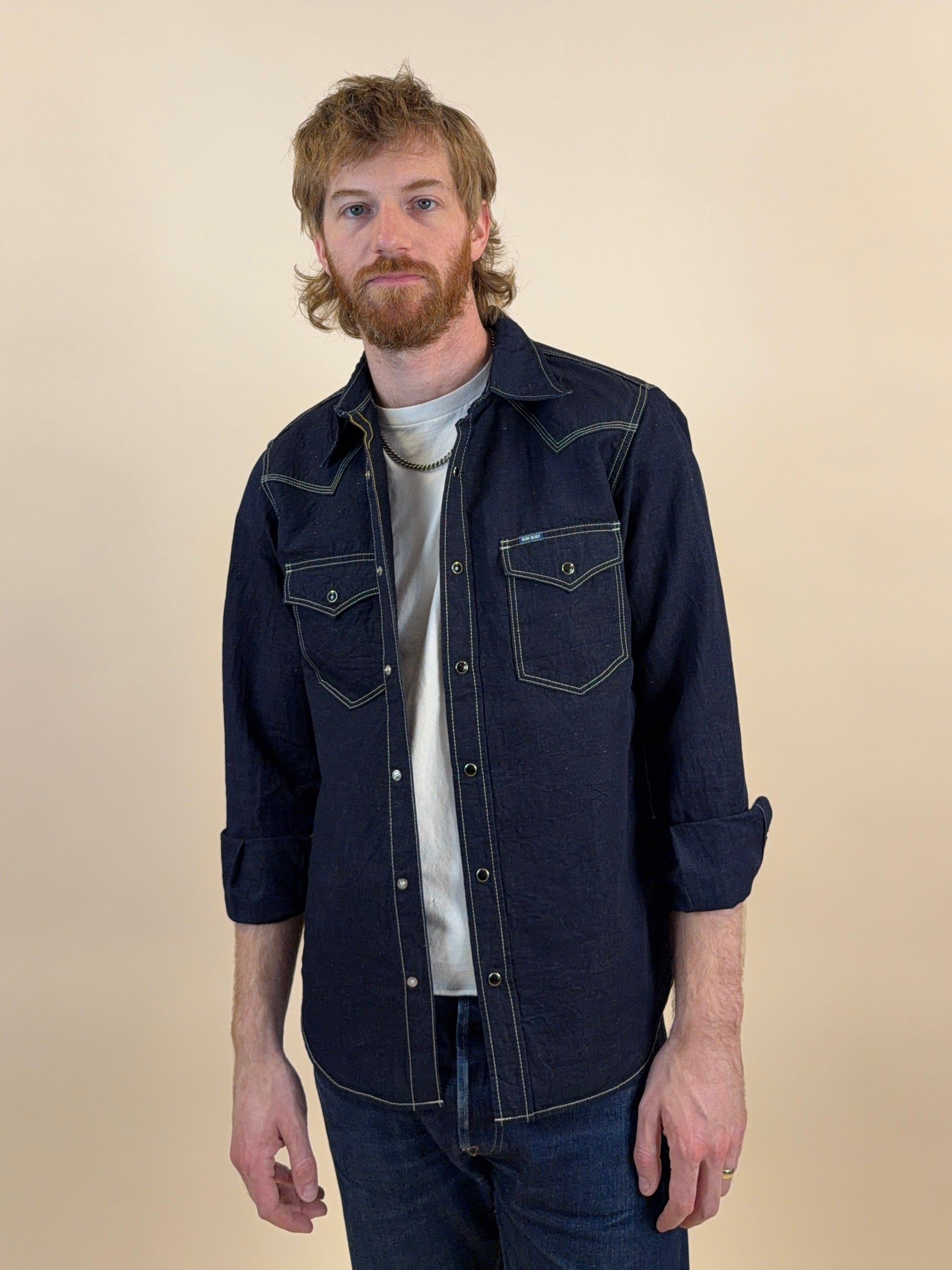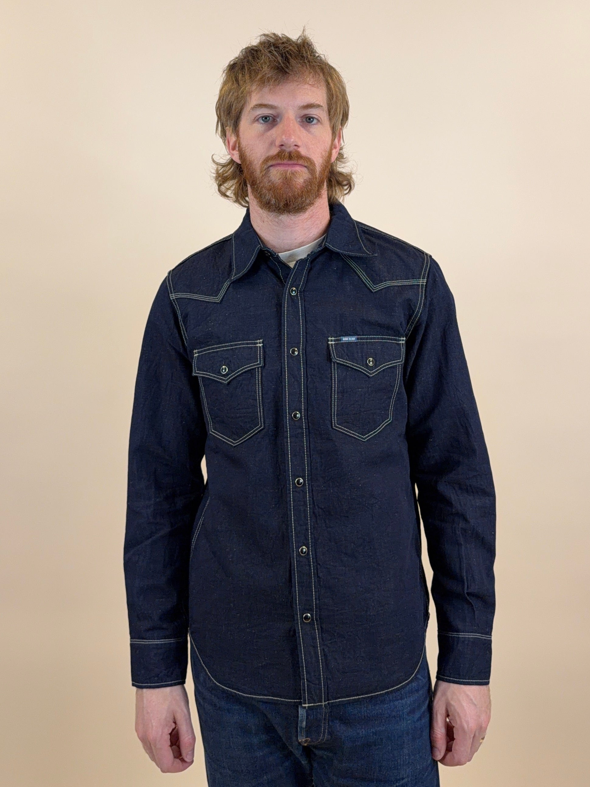 7oz Cotton Linen Chambray Western Shirt Indigo