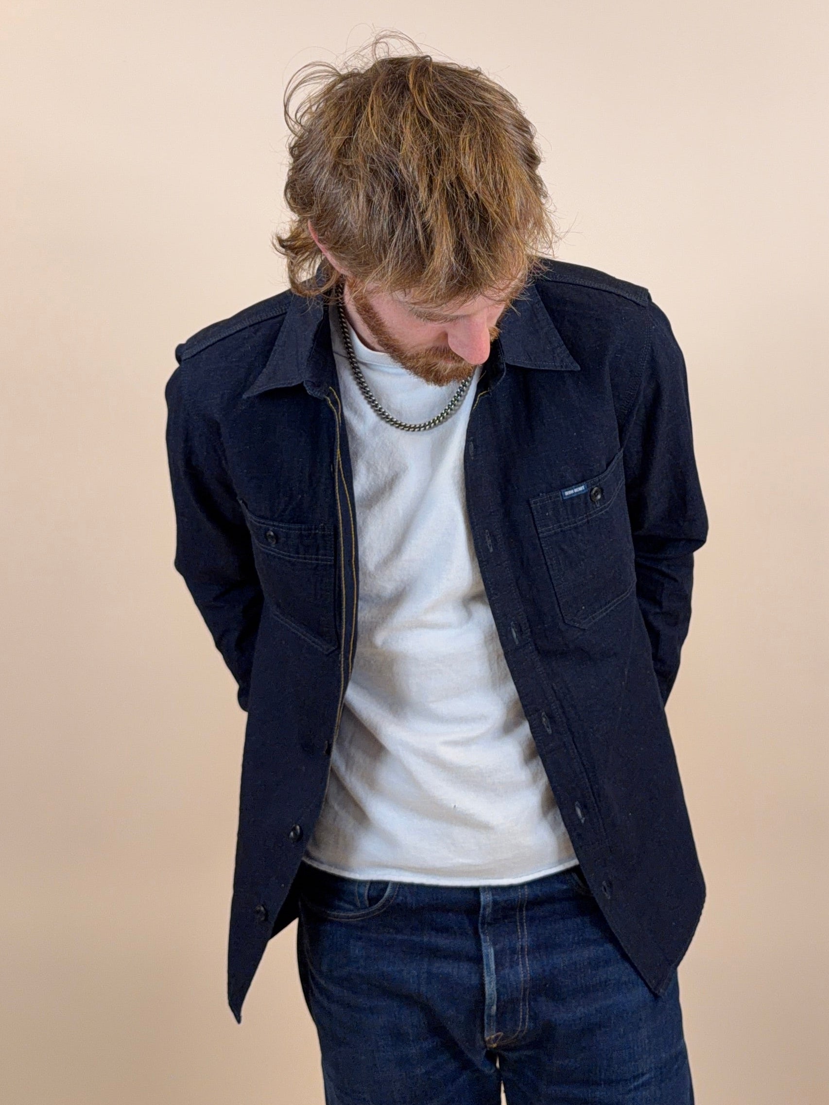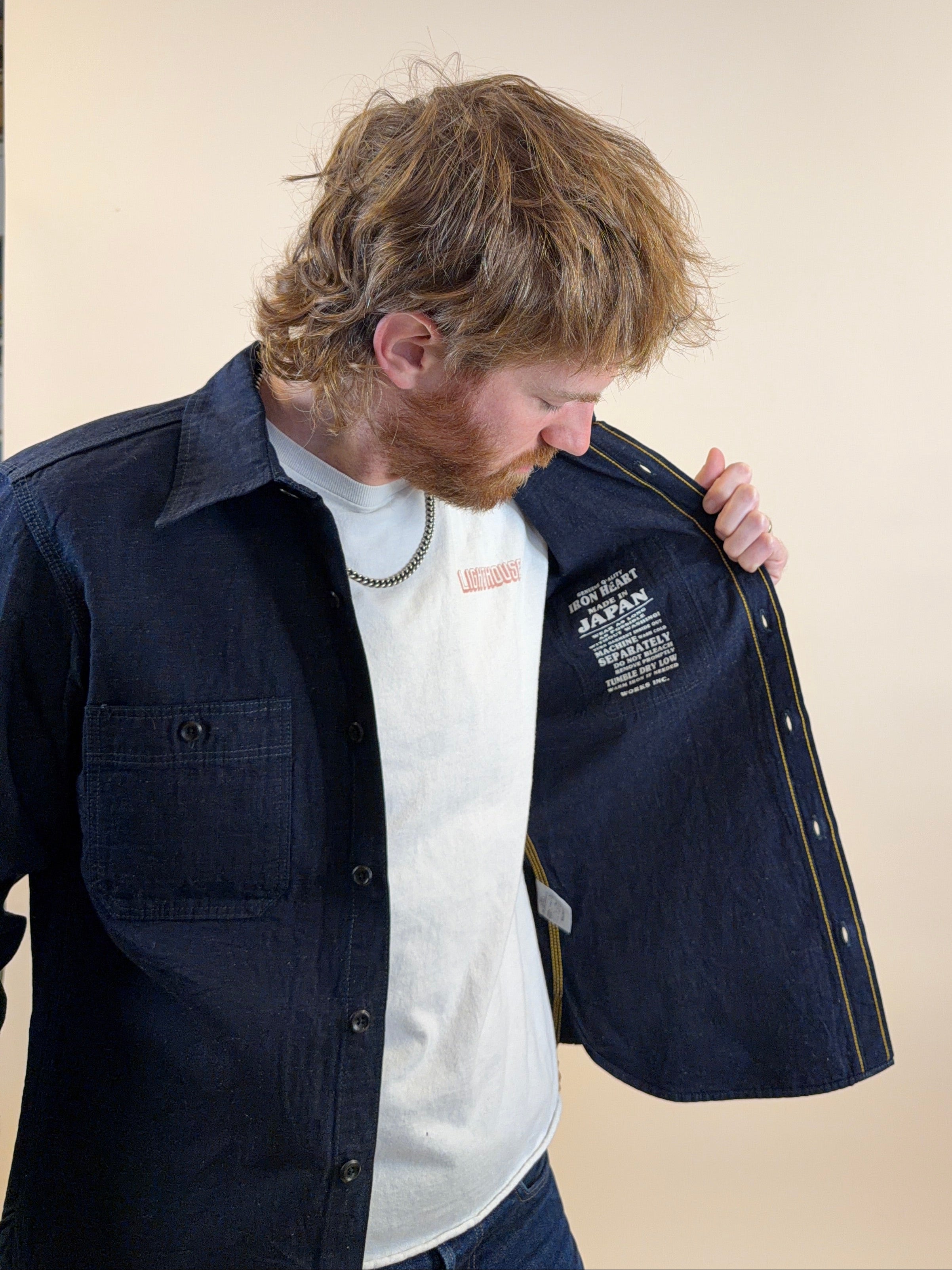 Iron Heart’s classic work shirt, done in a lighter weight for warmer days.