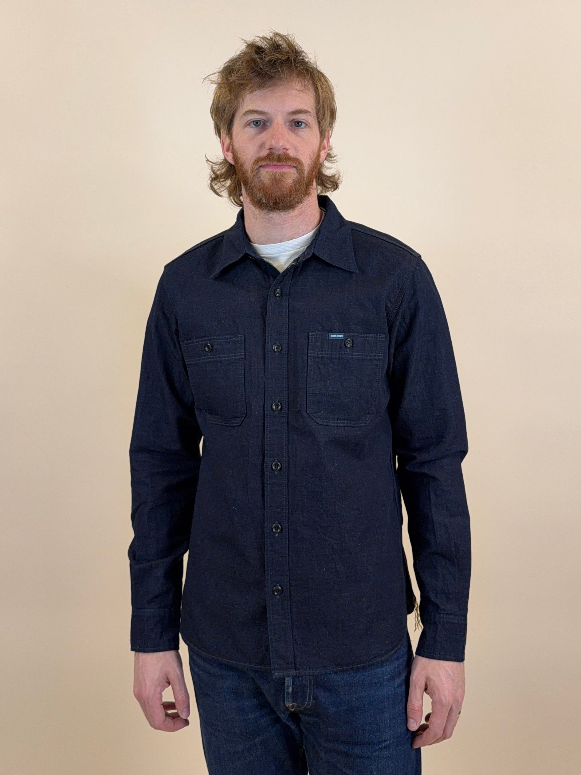 7oz Cotton Linen Chambray Work Shirt Indigo