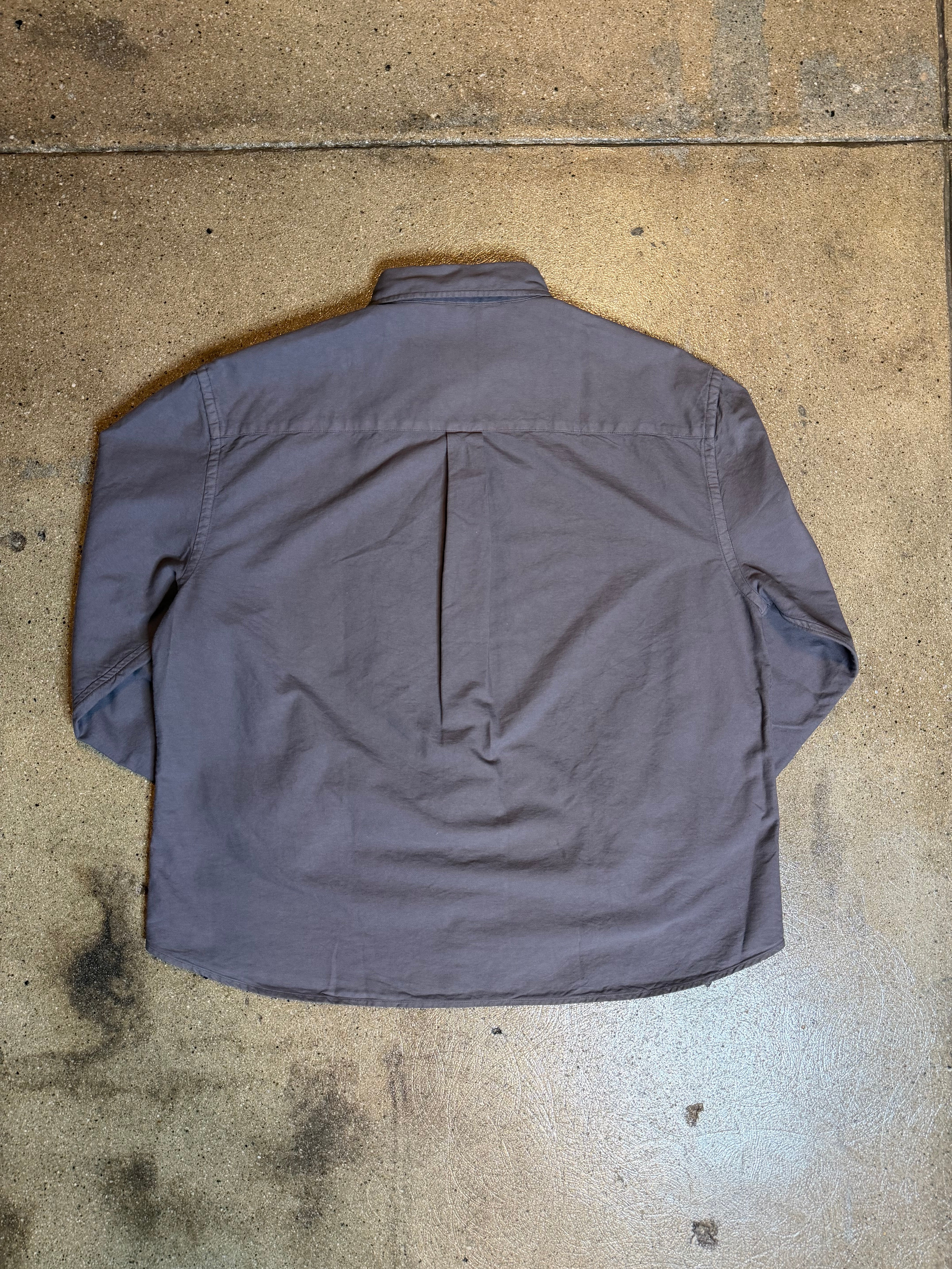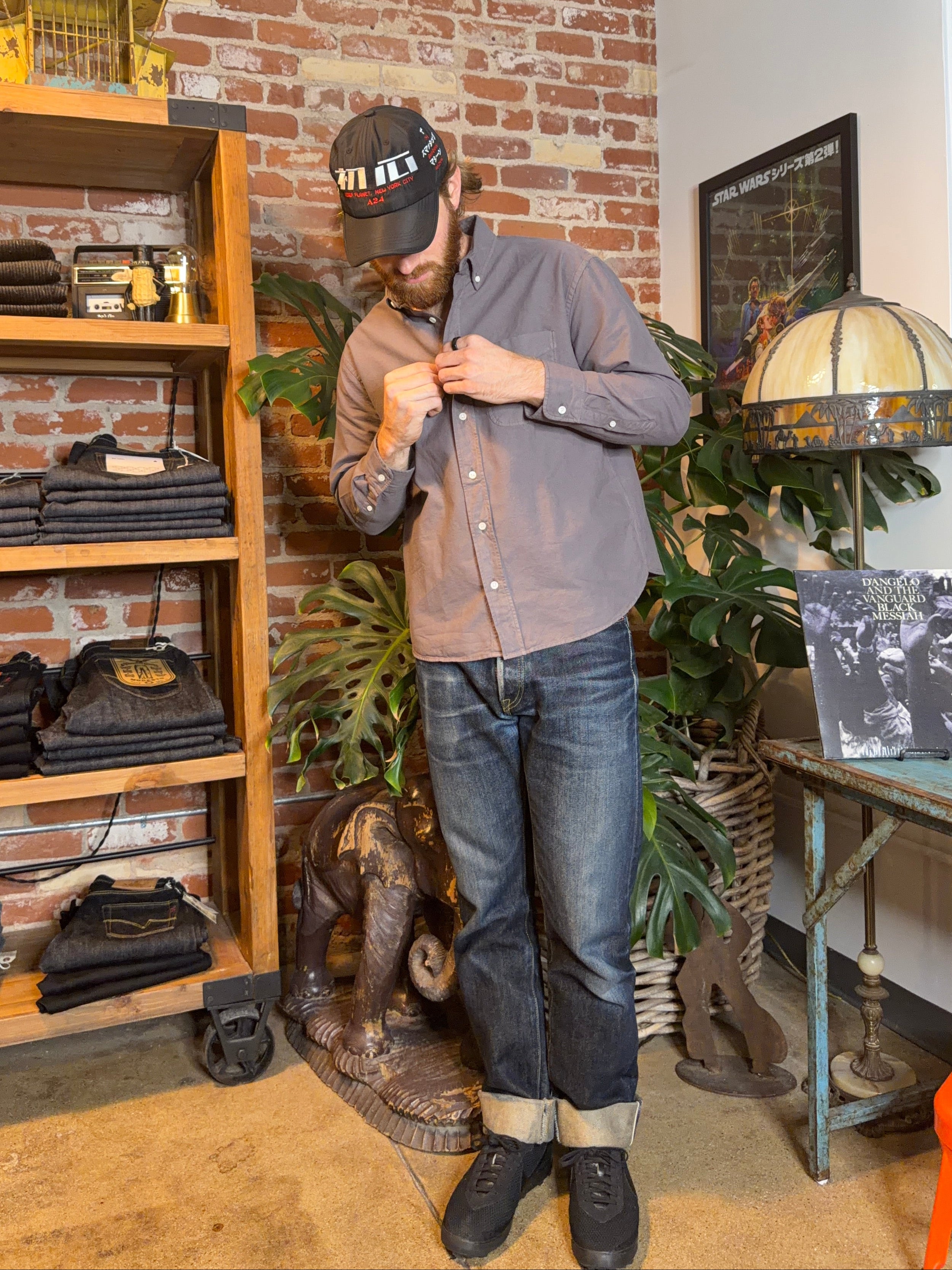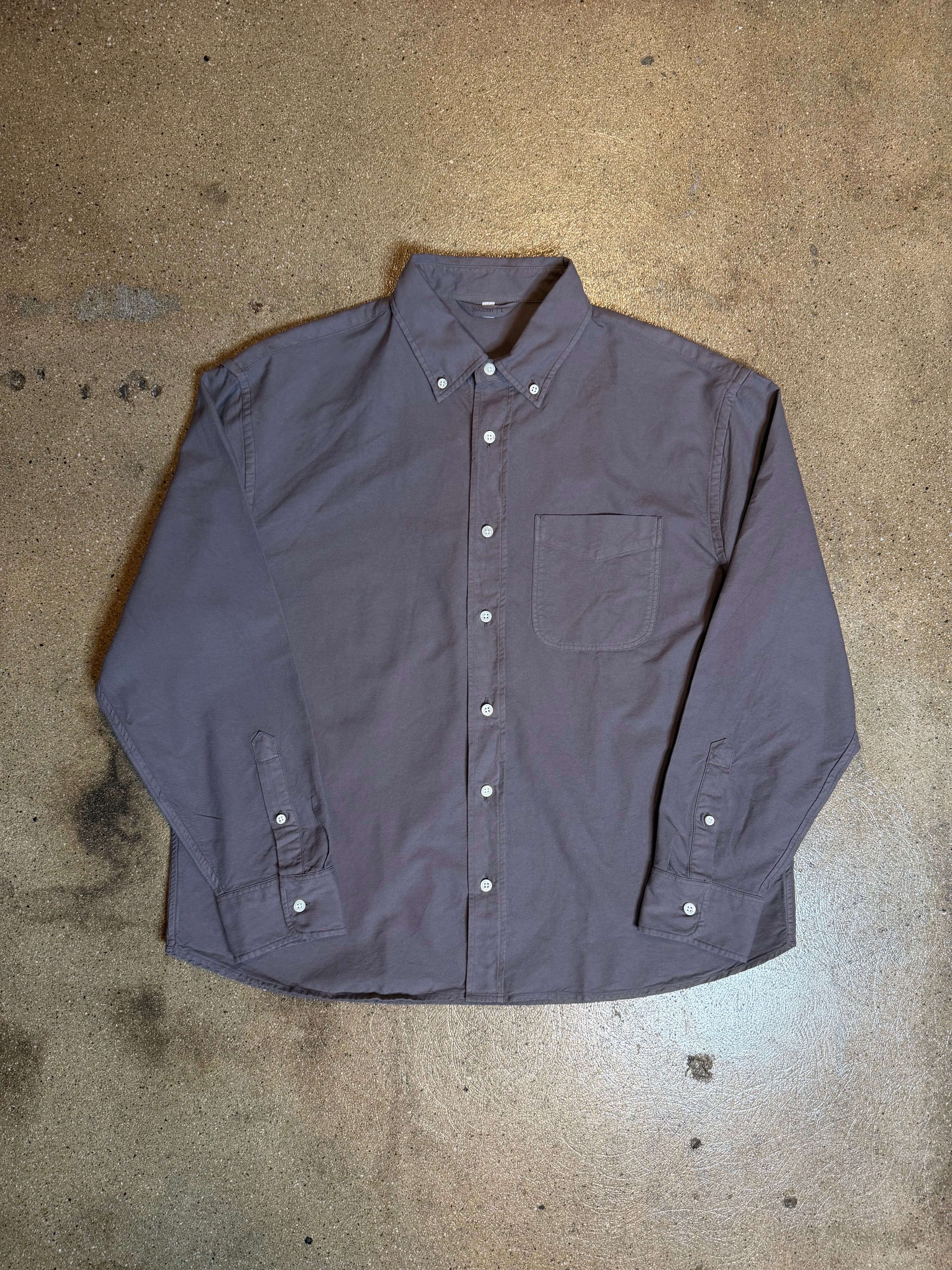 The Big Oxford is a modern, casual take on the traditional oxford. The shirt is cut with a wide chest and shoulders and looser sleeves. The generous proportions are matched with a carefully considered length and sleeve length so the shirt maintains its oversized feeling without appearing too big. The shirts been garment dyed for a perfectly lived-in color. Made in Portugal.