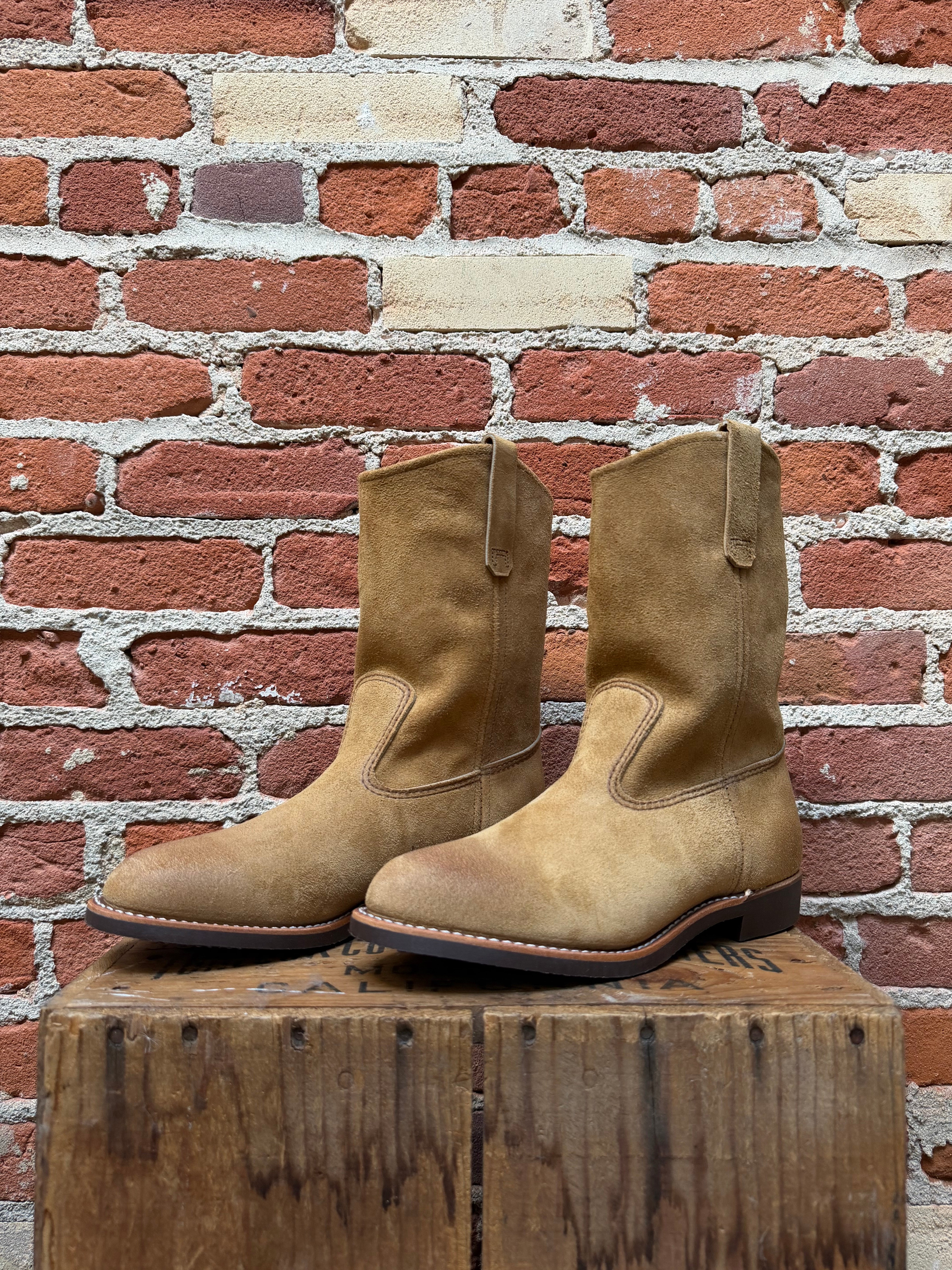 The wait is over - the Pecos are back and my goodness are they good. First made for cowboys in 1958, the Pecos boot quickly became a popular choice outside the world of ranching. Reintroduced in Hawthorne Muleskinner roughout leather, this 11-inch pull-on boot honors its origins with a durable Brown Chemigum outsole, premium leather comfort pad for extra cushioning, and rugged Goodyear leather welt construction.