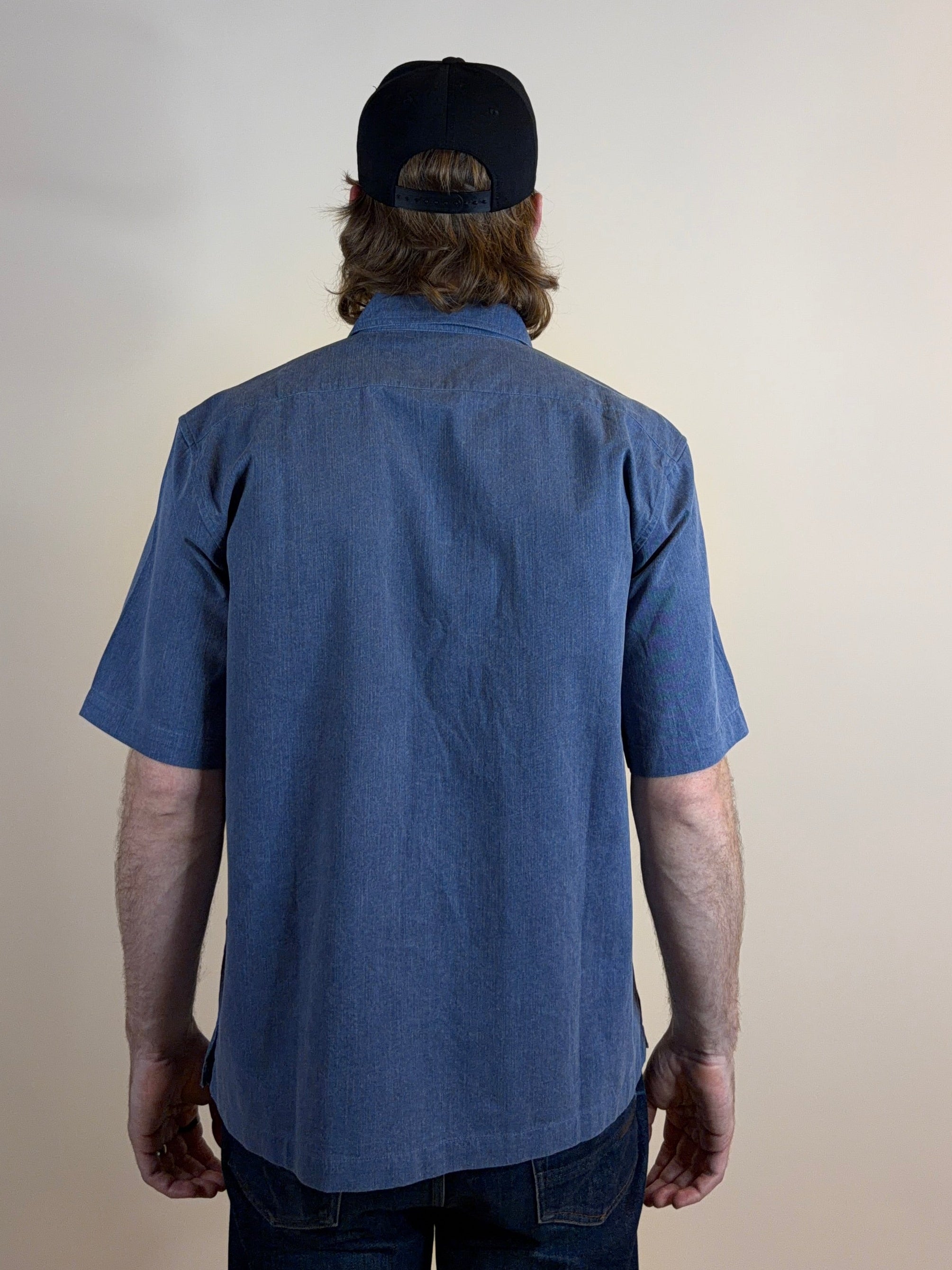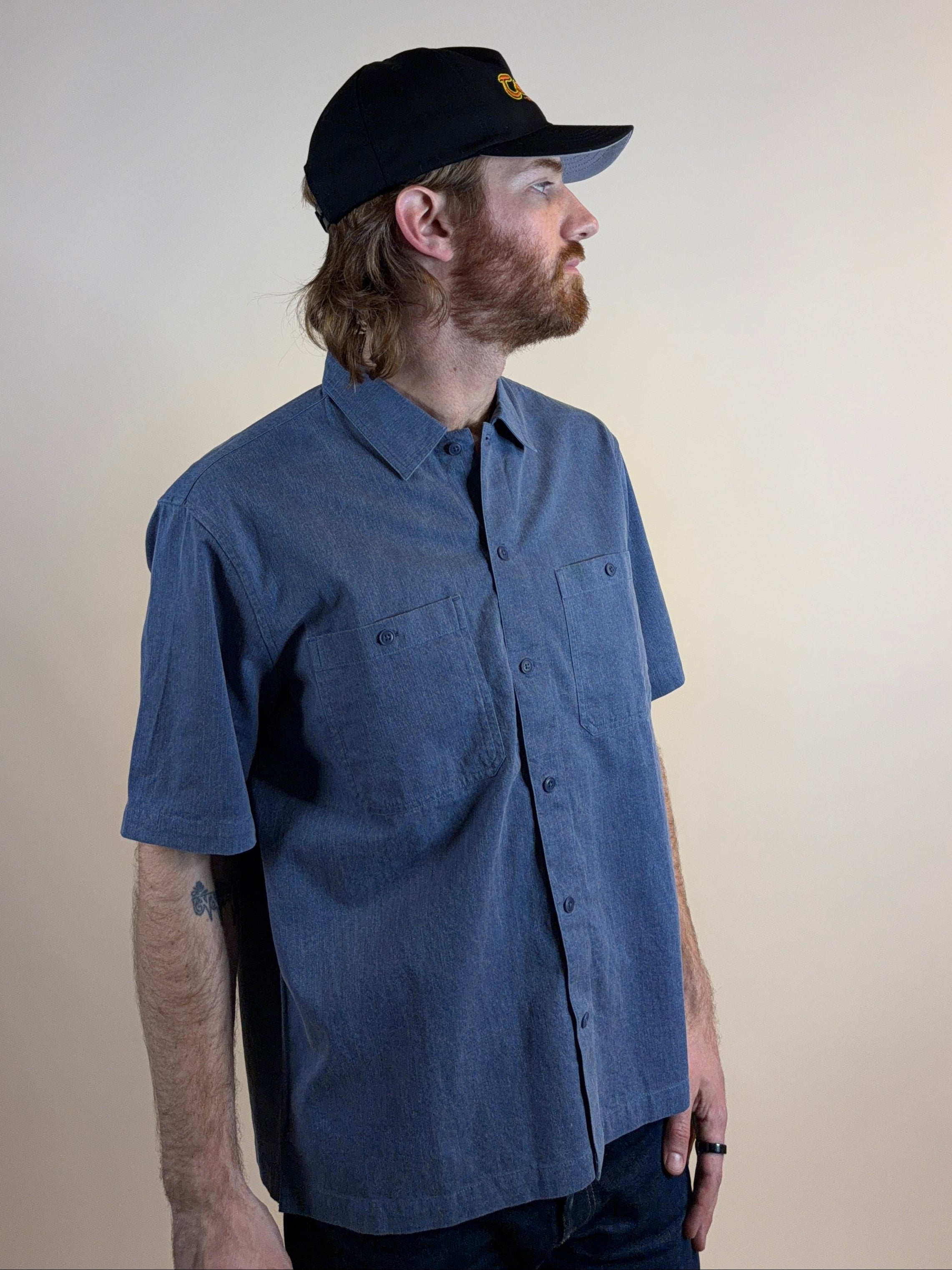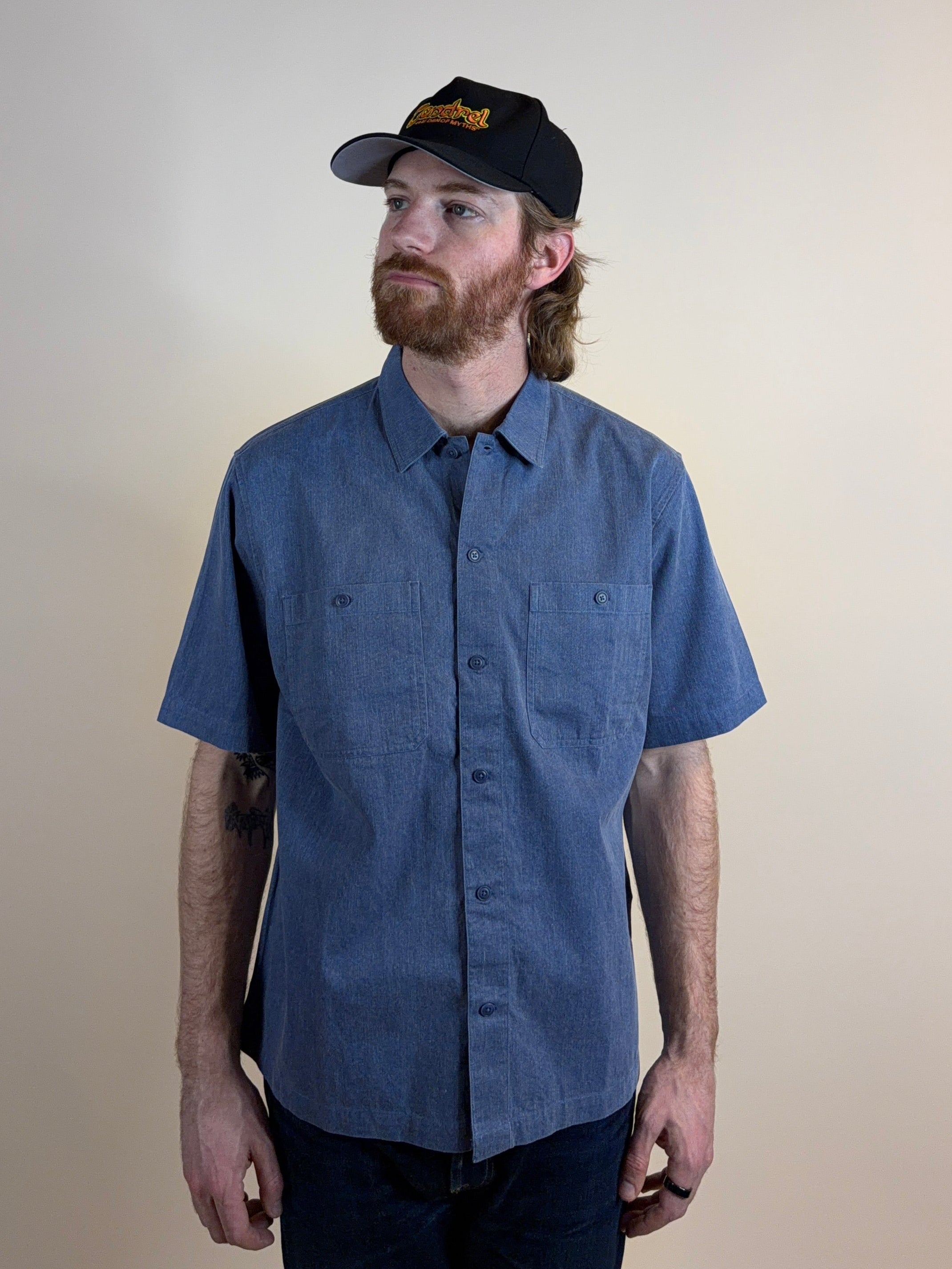 The fit is generous with a slightly shorter length, giving it that easy, boxy shape that works well in warmer weather. Dual cut corner chest pockets keep it rooted in traditional workwear.