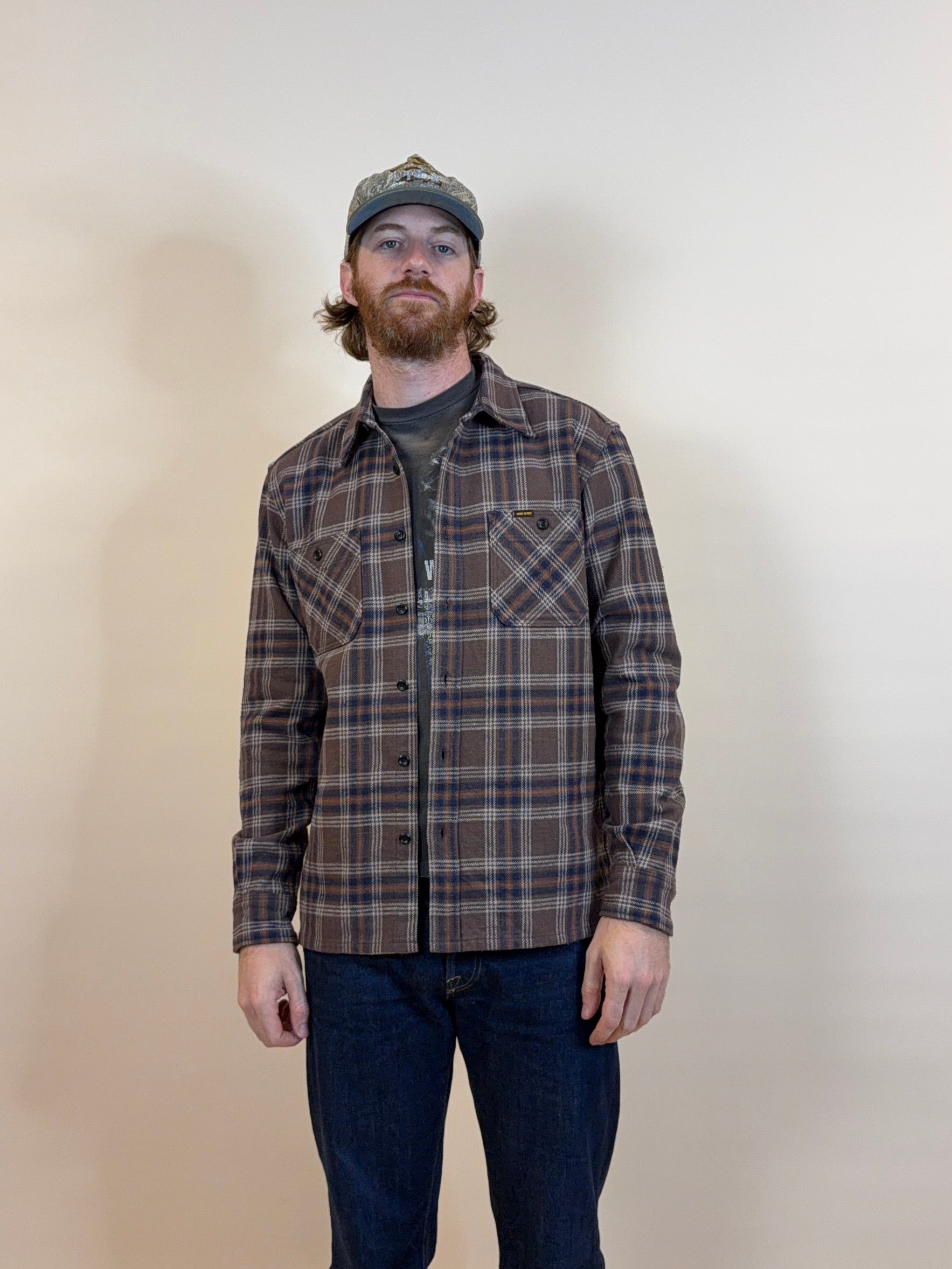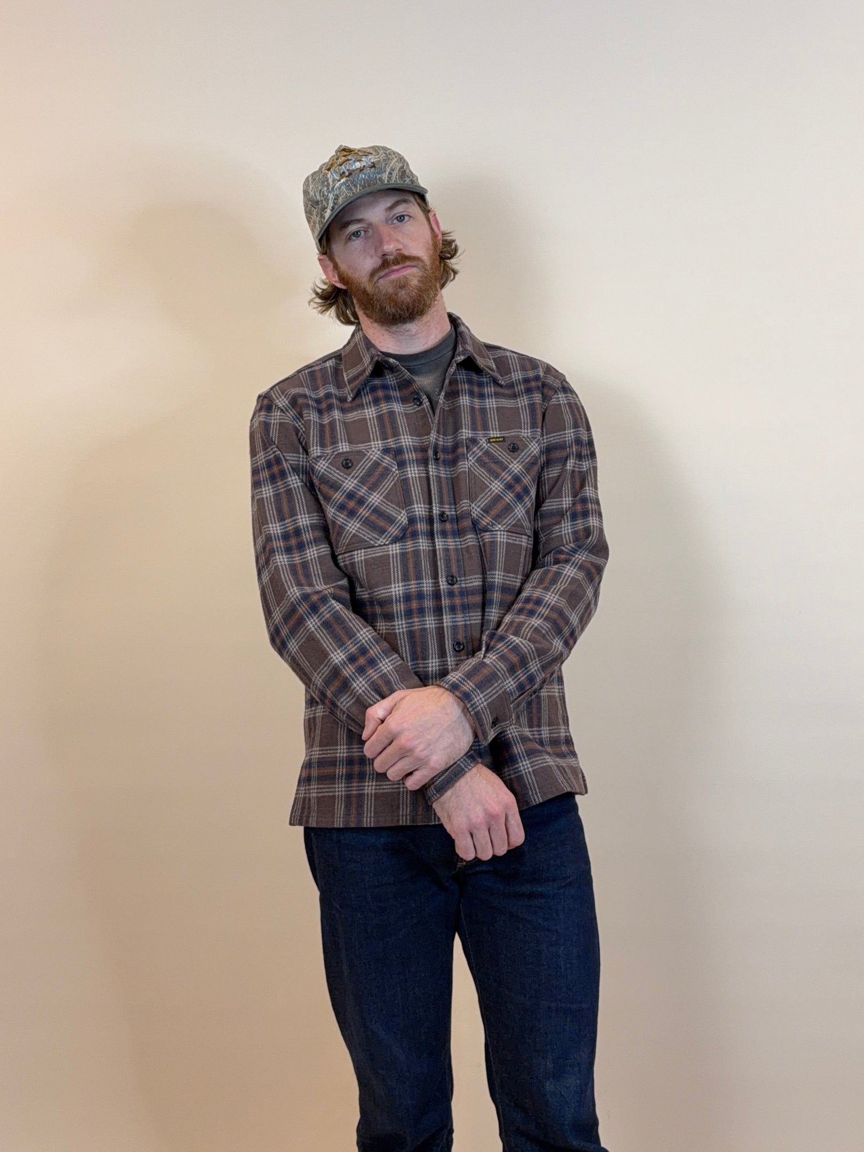 12oz Slubby Heavy Flannel Check Work Overshirt Brown